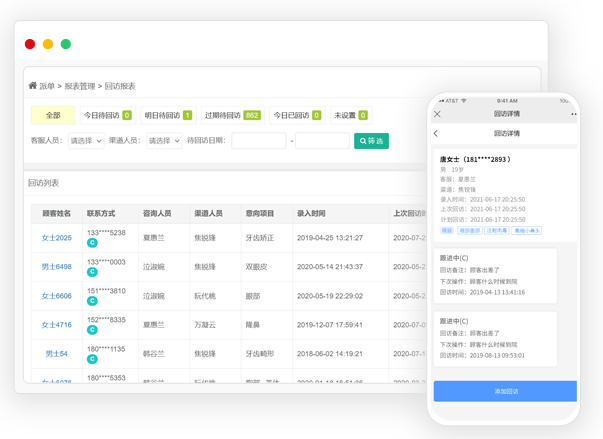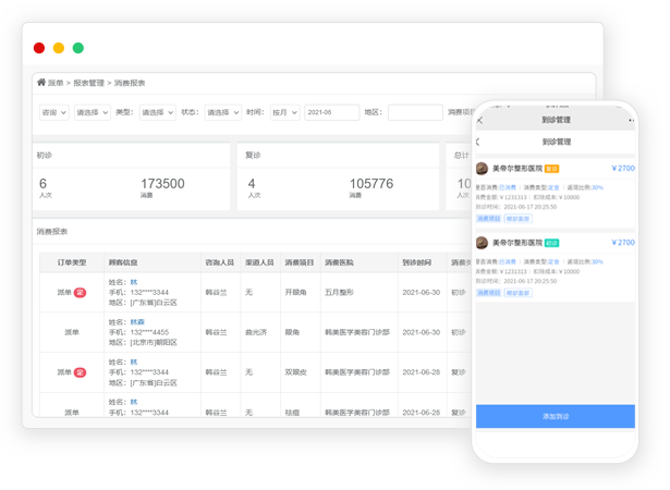 線索管理,跟進(jìn)顧客與消費(fèi)備注,消費(fèi)報(bào)表與對(duì)賬